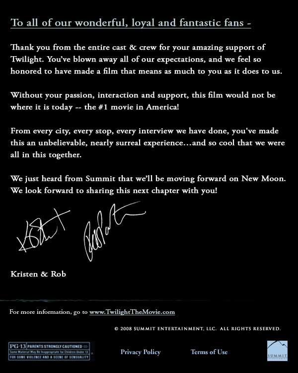 There’s a lot of discussion about casting for “New Moon” - in particular, the casting of Jane Volturi. I haven’t heard if the part’s been cast yet, but I’m guessing not, since they just announced that the movie is moving forward. Nothing listed on the IMDB site for “New Moon” yet, either.